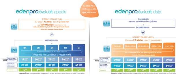 Le forfait Eden smartphone est désormais disponible uniquement en illimité mais proposé en deux versions. La première incluant un fair-use de 3 Go pour 59,90 €/mois et la seconde avec un fair use plus petit de 1 Go à 49,90 €/mois.