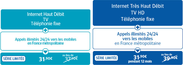 La série limitée Bbox ADSL incluant les appels illimités vers les mobiles sera proposée au tarif de l'offre premier prix, soit à 31,90 €/mois au lieu de 37,90 €/mois