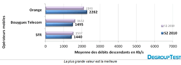Le baromètre des connexions fixes et mobiles du deuxième semestre 2010 a été publié il y a quelques jours par nos confrères de DegroupTest. Les résultats qui suivent sont tirés de l'ensemble des tests de débits effectués sur le site DegroupTest (serveur hébergé chez OVH à Roubaix) du 1er juillet au 31 décembre 2010, soit 3.568.524 tests. Intéressons-nous aux chiffres concernant les offres Bouygues Telecom.