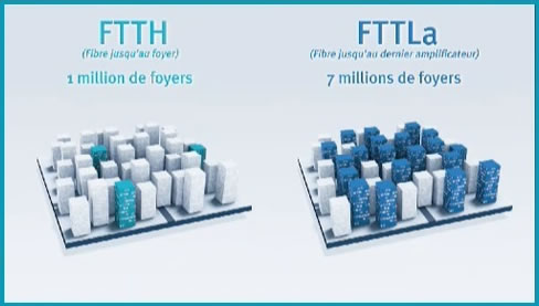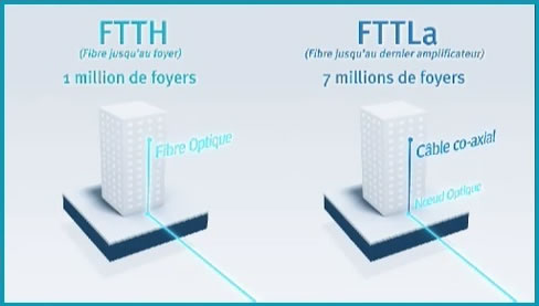 Le FTTLa, la fibre arrive au pied de l'immeuble et ensuite, c'est un câble coaxial qui la relie à votre salon.